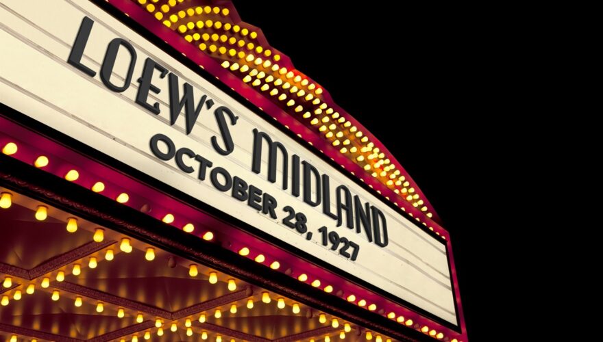 Leasing Office: Historic photograph of the Loew’s Midland Theatre marquee