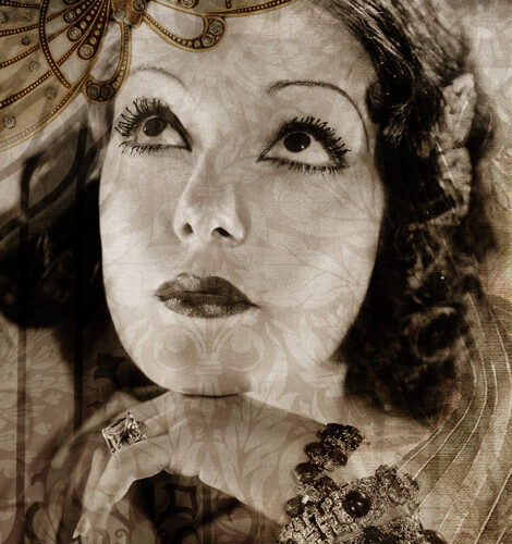 Elevator Lobby: Lady in Pearls, by Tyrus Lyton, epitomizes the glamour of the Golden Era in Hollywood, when opening nights and film premieres were lavish see and be seen affairs.